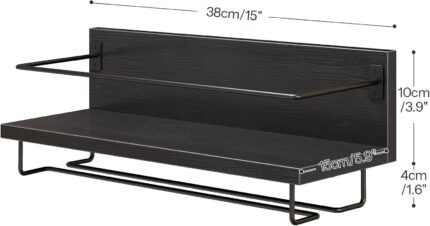 HOOBRO Wall Mounted Wine Rack 2 Pack, Wine Shelf Hanging Floating Wall Shelves, Wine Glass Bottle Rack Stemware Holder, for Living Room, Dining Room, Kitchen, Black BK28BJ01