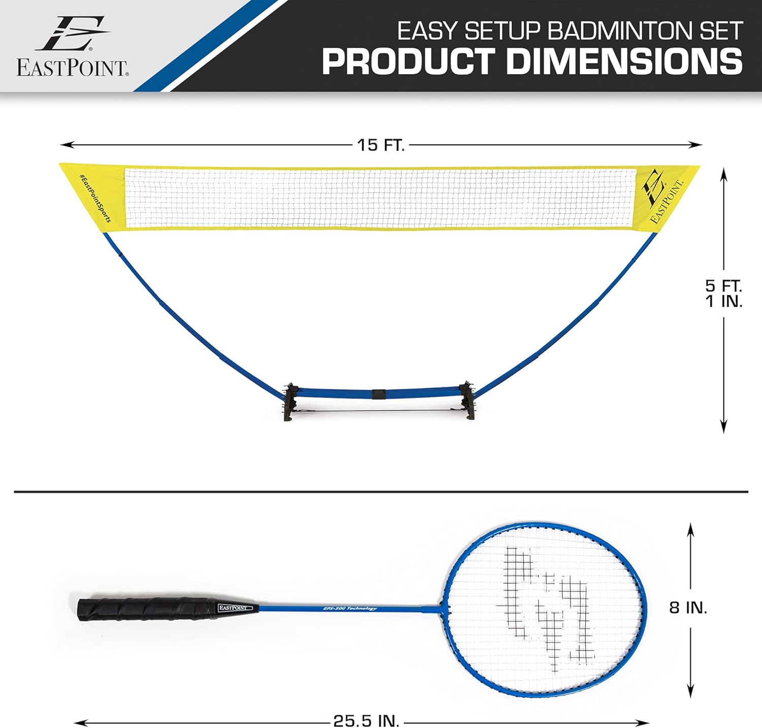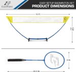 HIGH-QUALITY SPORTS EQUIPMENT – Includes (1) 5ft badminton net and pole system, (4) official size badminton rackets with tempered steel shafts, grommets, and cushion grips, (2) white badminton shuttlecocks, and (1) set of game rules.