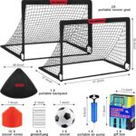 Complete and Valuable Soccer Goals Set – The VAVOSPORT Soccer Net Set is the most complete soccer set on the market. It has 2 easy-fold kids’ soccer goals, 1 std size 3 soccer ball, 1 inflation pump, 10 cones, 8 U-shaped heavy-duty ground nails and 1 carrying bag. One soccer set for everything you need to develop your child into a little athlete, allowing your kids to have their “own” net to score a goal on!