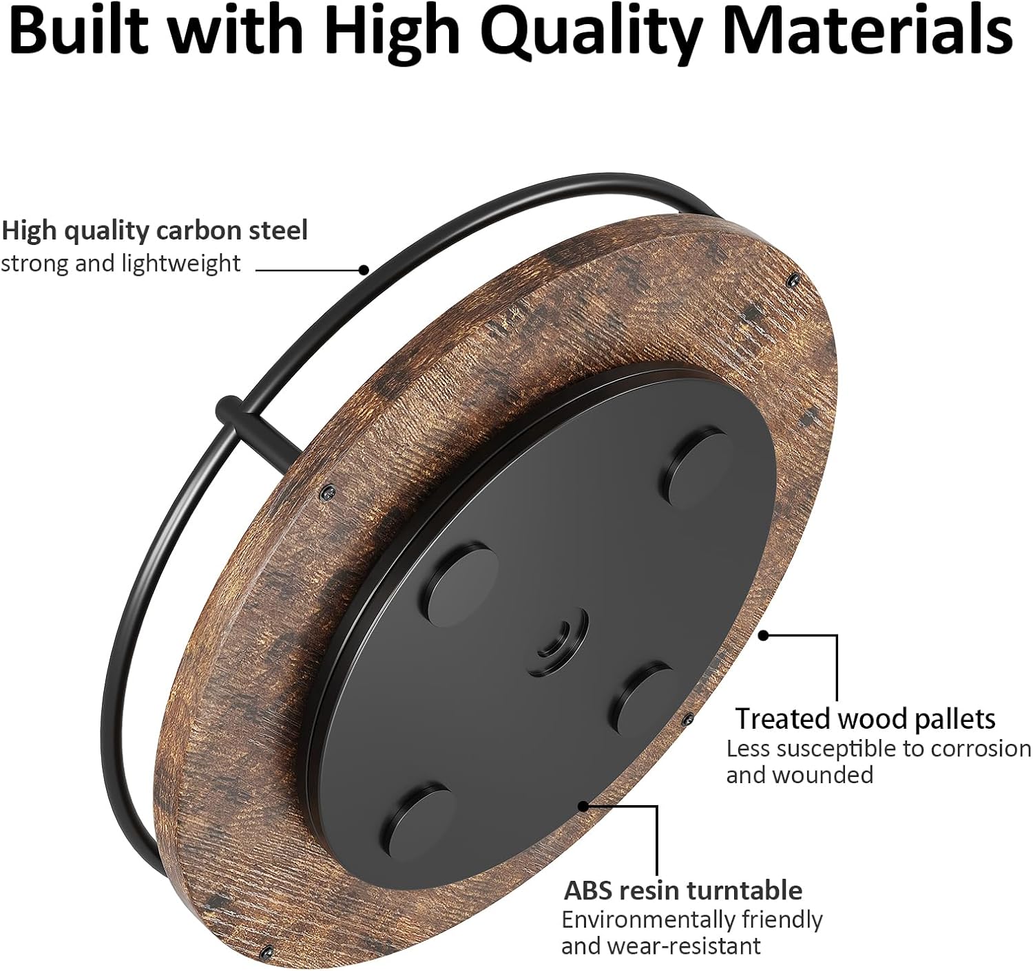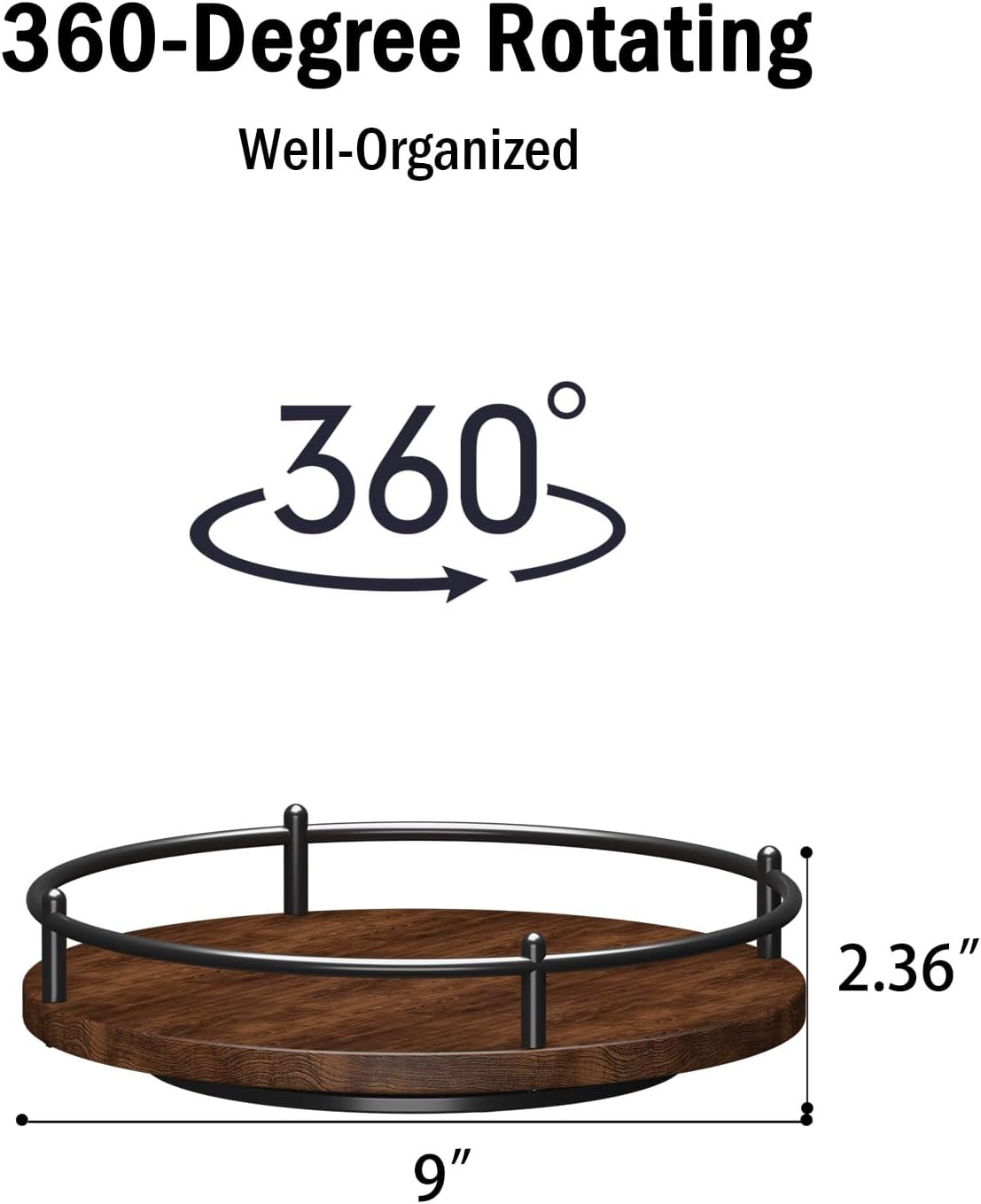 Better Design Structure: Black (carbon steel) – Brown (wood) – Black (ABS resin) design gives a unique sense of hierarchy to the vintage and elegant appearance of this round Lazy Susan,it can also be a nice decoration in your home. In addition, with our Lazy Susan turntable base with four non-slip pads, we are able to ensure greater stability when rotating.